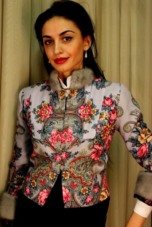 Очень давно мечтала о красивом костюме из павло-посадских платков мехом.Долго искала модель.И вот что нашла на бескрайних просторах интернета