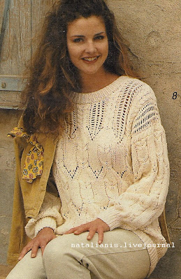 Этот узор образован при помощи перекрещивания двух петель. Рапорт узора по горизонтали в каждом лицевом (нечетном) ряду сдвигается на одну петлю, за счет этого получаются наклонные рельефные полосы.