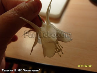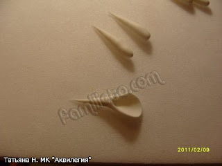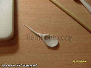 Сформировать лепесток-кувшинчик. Можно формировать шариком, но нужно сделать углубление в хвостик кувшинчика, затем прокатать палочкой для прожилок. Можно делать конусовидной моделирующей палочкой, потом можно прокатать прожилки, можно так оставить))) Вот конусом очень удобно!!!!