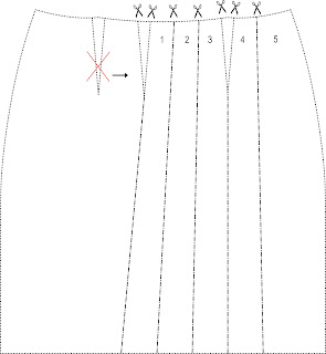 5. Разделить на 3 части пространство между двумя выточками на талии.