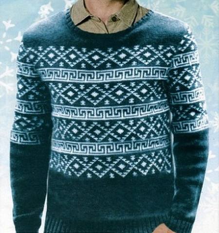 Мужской пуловер с круглой жаккардовой кокеткой |