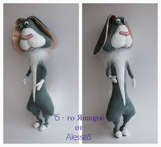 В своем блоге «Под музыку дождя» Олеся Сидоренко - замечательная мастерица из Киева, 15 января разыгрывает вот такого авторского зайку! Этот Зайка - идентифицируется как Подарочный экземпляр - презентация авторской эксклюзивной коллекции Зайцев, по мотиву персонажа из мультфильма "Сезон охоты"