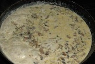 2. Потушить лук с грибами и сливками. Посолить и добавить приправы по вкусу.