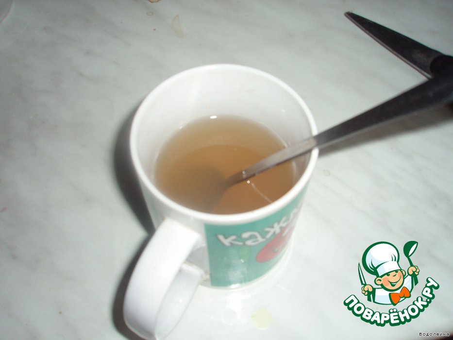 растворённый в стакане кипятка,желатин.Размешать до однородной массы .