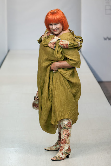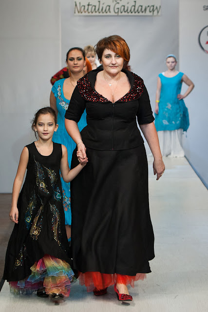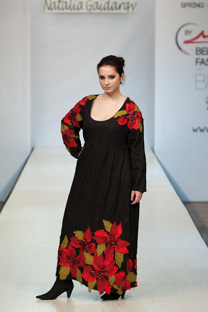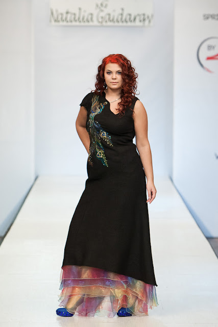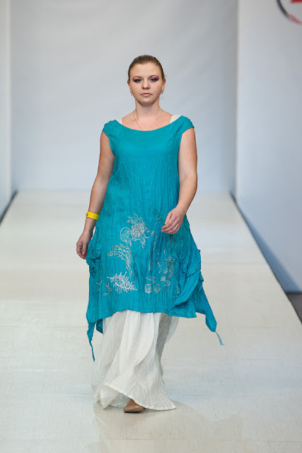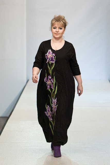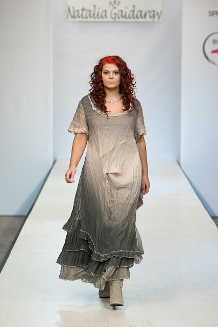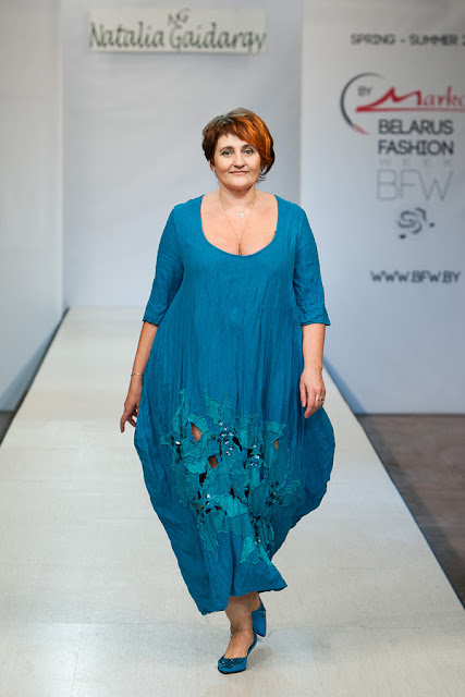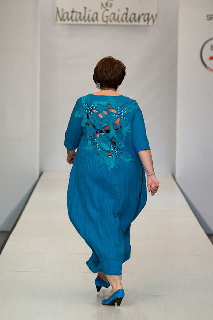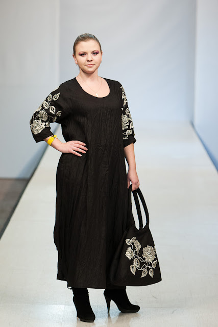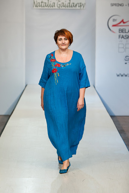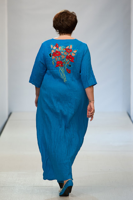 Настоящим открытием для меня стала коллекция дизайнера Натальи Гайдаржи (Беларусь). Любимый материал дизайнера это лен, а модели украшает ручная вышивка. Обувь и аксессуары из льна дополняют и завершают образ дам размера Х+. Я думаю, модели этой коллекции можно рекомендовать для woman boho+.