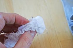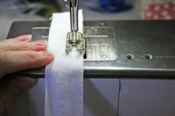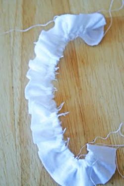 3. Прострочите по краю полоски самым крупным стежком. На концах полосок оставьте не отрезанными приблизительно 5 см ниток.