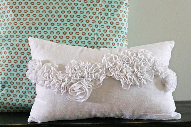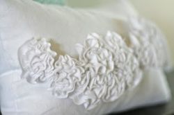 Декор на этой нежной подушке из фланели похож на заснеженные цветы. В этом мастер-классе вы научитесь делать эти цветы из оборок.