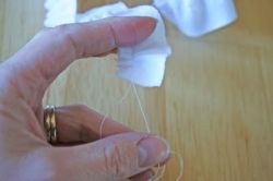 4. Аккуратно, чтобы не порвать, потяните за нижнюю нитку.