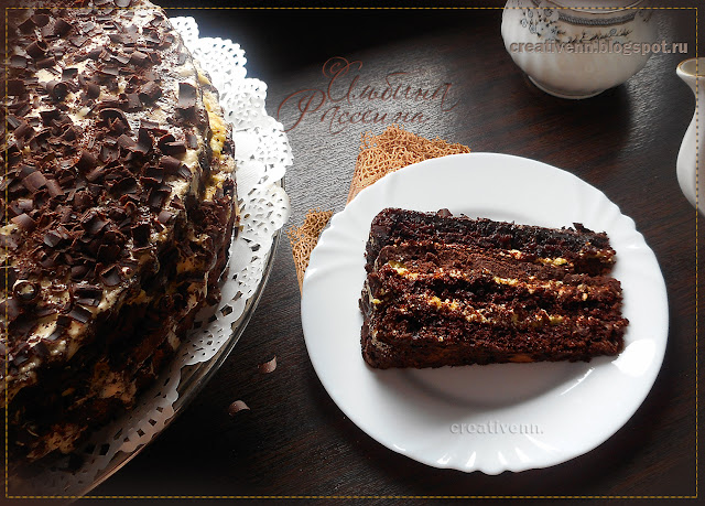 Торт авторский, шоколадный, из доступных продуктов, из трёх видов коржей