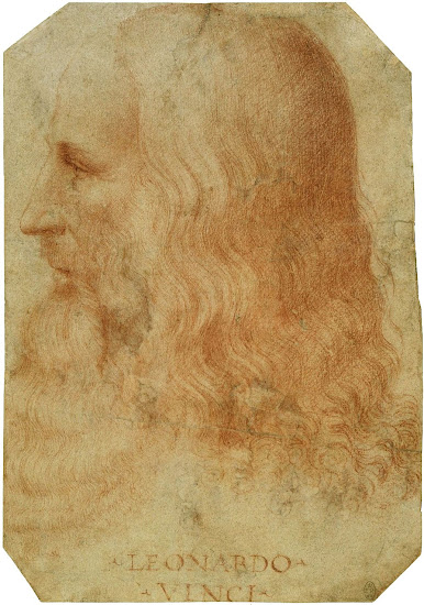 справа: Портрет Леонардо да Винчи, предп. работы его ученика Francesco Melzi (1491 - 1568/70).