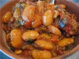 Получившийся соус перелить в кастрюлю с фасолью и оставшимся при варке отваром, осторожно перемешать, сверху посыпать рубленой зеленью укропа. Поставить кастрюлю с фасолью в горячую духовку и запечь до полного загустения фасоли и подрумянивания верхнего слоя.