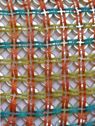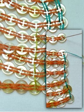 начинаем ряды между собой соединять, продевая нитку в дырочки (как бы