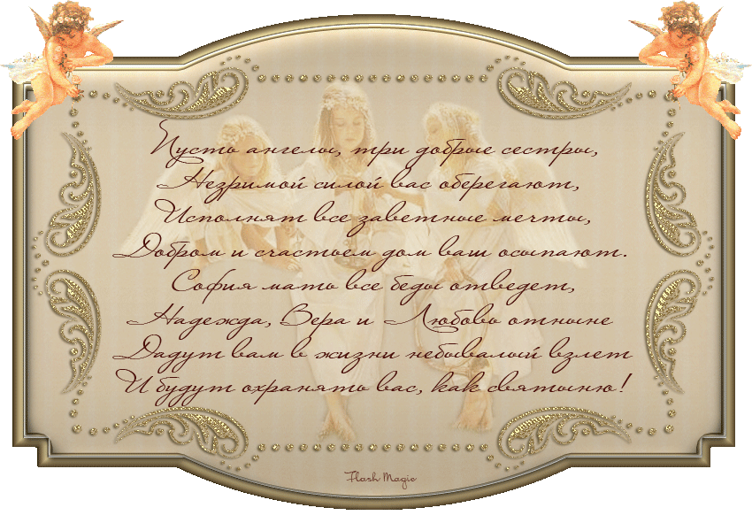 Весёлое пожелание к дню ангела Вере, Надежде, Любви и Софии! |