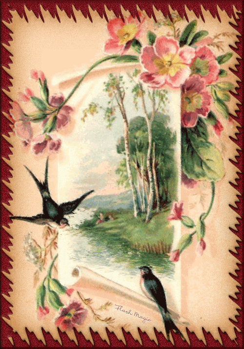 Ласточки прилетели. Анимированная открытка. |