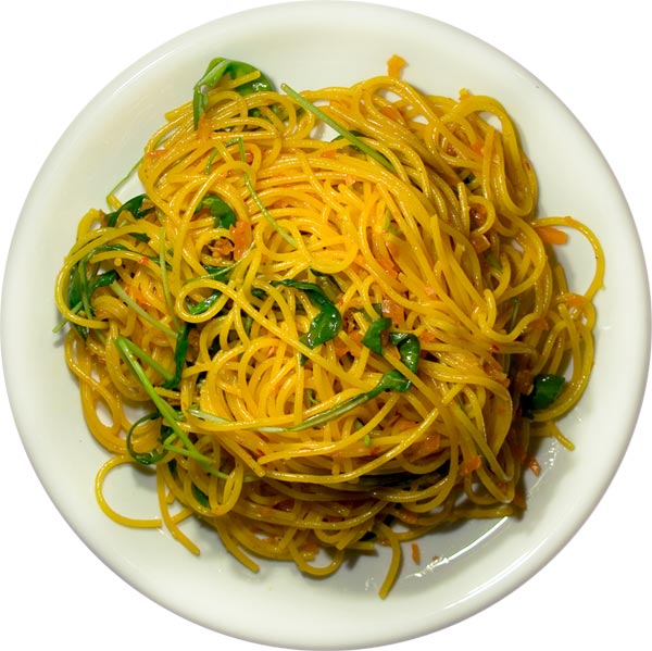 Ужин. 115 г макарон с креветками по вкусу, салат из шпината с низкокалорийной заправкой.