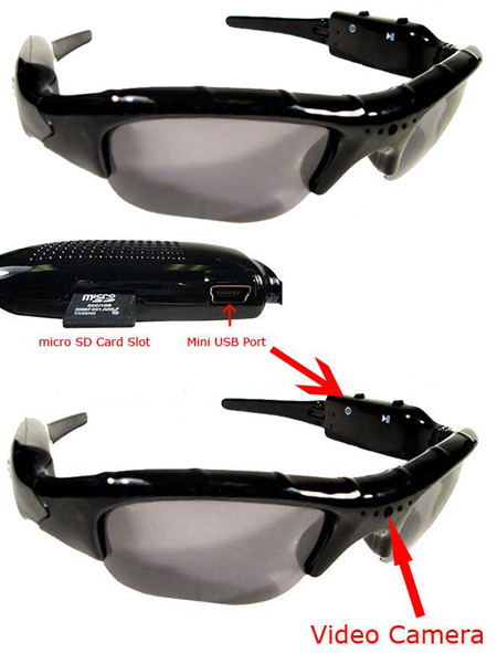 Очки шпиона имеют встроенную крошечную видеокамеру для фиксирования того на что смотрят глаза. Система имеет зарядную батарею и 8 гб внутренней памяти, способной снимать видео до 80 минут. Стоимость очков составляет 92$.