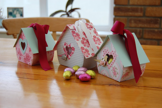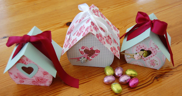 Я сделал эти мало птиц дома, которые заполнены с мини-яйца, с использованием шаблона любимый мой, который является Шаблон здесь http://nicholeheady.typepad.com/files/bird-box-template.pdf