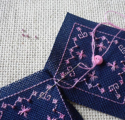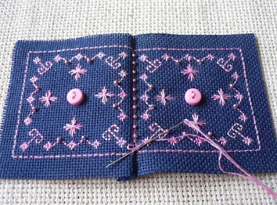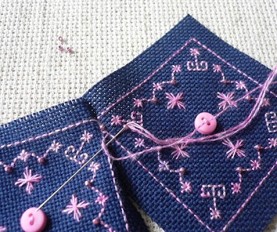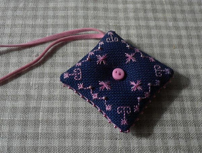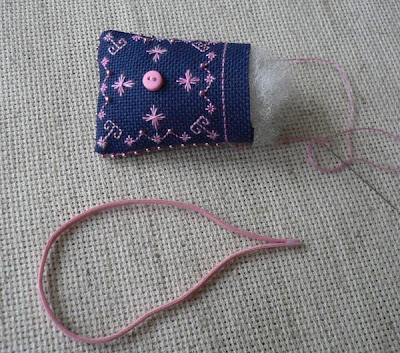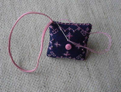 Slipstitch around the base circle. Leave a tail of floss to complete the bottom of the pincushion. |