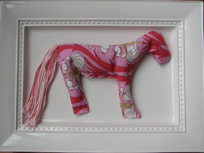 Хочу успеть вас порадовать сегодня еще одной находкой. Замечательная и очень простая в работе лошадка из ткани. И в качестве милой игрушки можно использовать. И, посмотрите, как замечательно она смотрится в однотонной рамке. А если поиграть цветами? Ну, в общем, с меня идея, с вас - реализация!