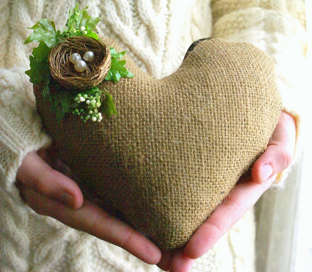 Пасхальное сердце из мешковины. Фото идея от Kathleen Grace |