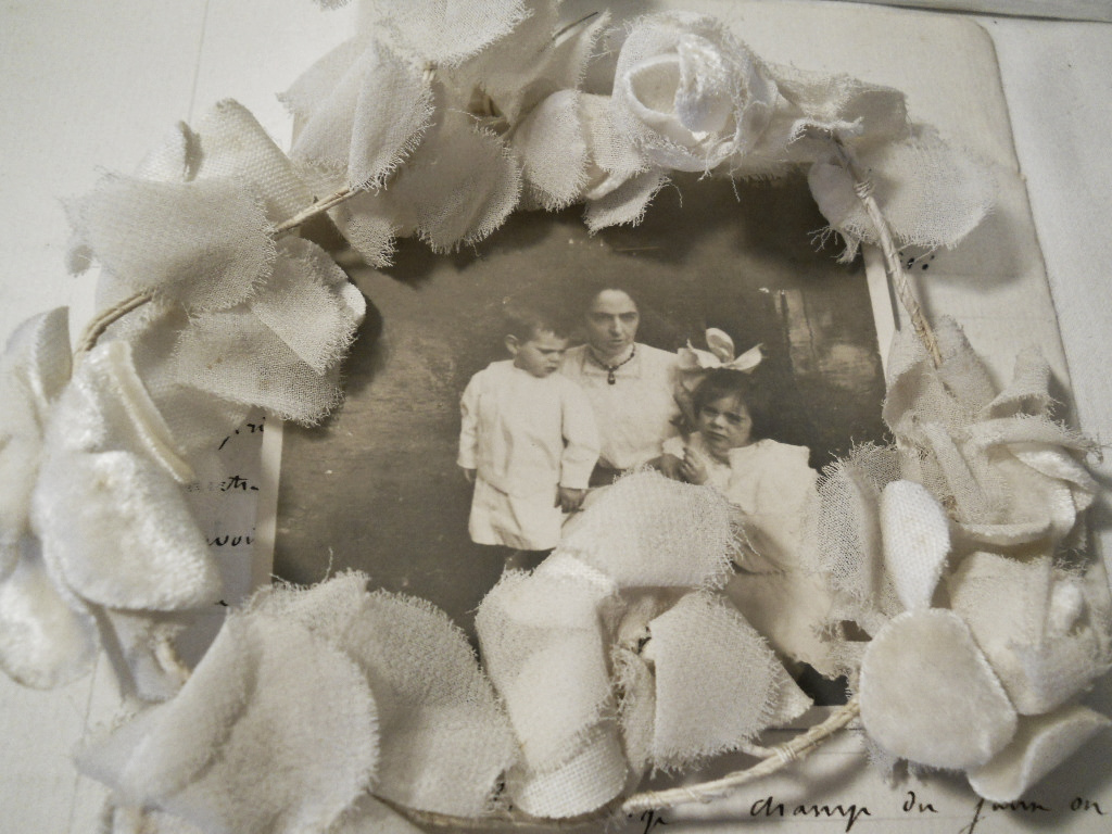 Чудесное исполнение:) Автор Ронда - A Little Bit French декорировала веревочкой винтажное фото. Так просто и вместе с тем очень симпатично - веревочка с узелками, листики и розочки из ткани. А вам куда просится?