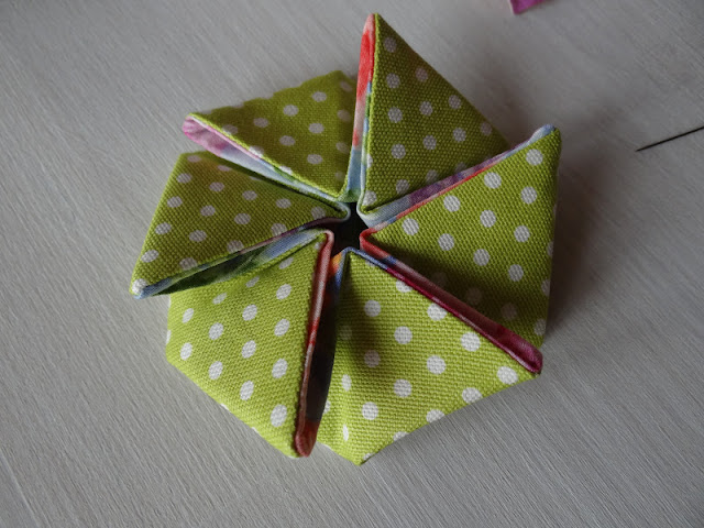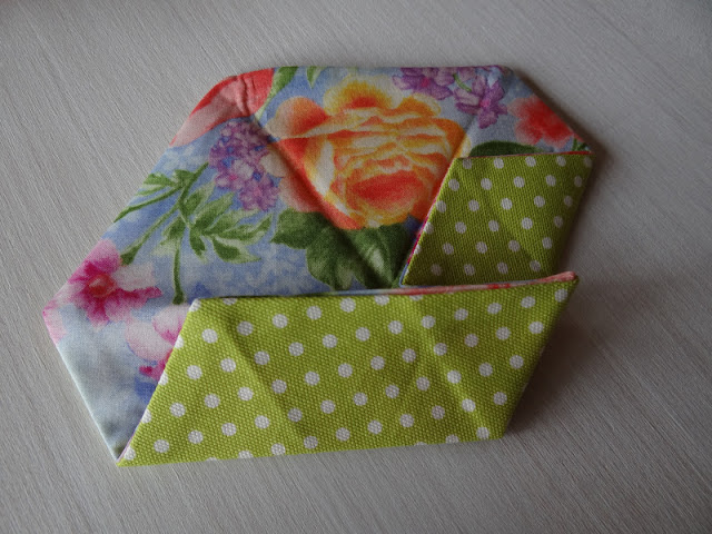 Во время фотосессии, простите сел аккумулятор в фотоаппарате, и я не запечатлела три шестиугольника из японского хлопка. Надеюсь вы поймете, это легко, у меня было шесть шестиугольников, все они были проклеены клеевым эластичным материалом. Далее я сложила попарно все эти шестиугольники лицевой стороной во внутрь, сколола булавками, и села за машинку, их сшивать ) оставив маленькое отверстие для выворачивания. За это время фотоаппарат подзарядился, как вы видите, результат на фотографии.