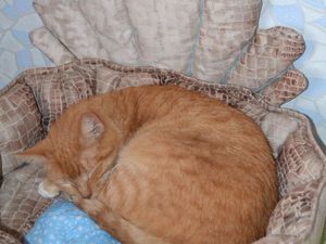 Сегодня мы будем шить необычную вещь для наших любимых животных. Рыжую кошечку я взяла этой весной из приюта, ей 4 года. Мы назвали её Матрёшкой. По характеру Матрешка довольно спокойная, поначалу она всего боялась, но через месяц вполне освоилась в квартире и начала играть — и даже немножко хулиганить. Она оказалась очень изящной и ласковой. Мы быстро подружились с Матрёшкой, и мне очень захотелось сделать для неё и для себя что-то приятное. Все кошки много спят, и ко мне пришла идея сшить для неё нарядное и уютное гнездышко.