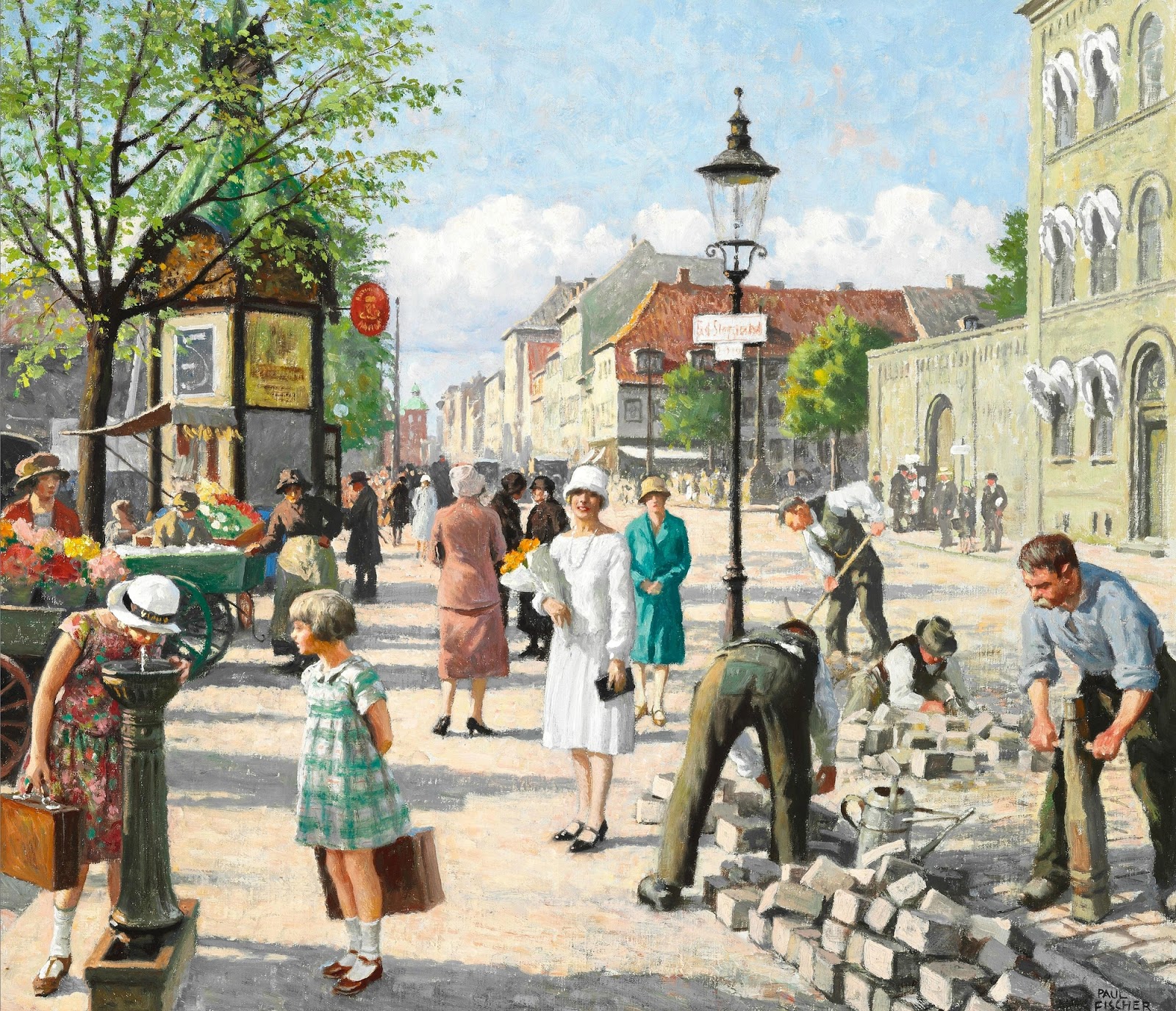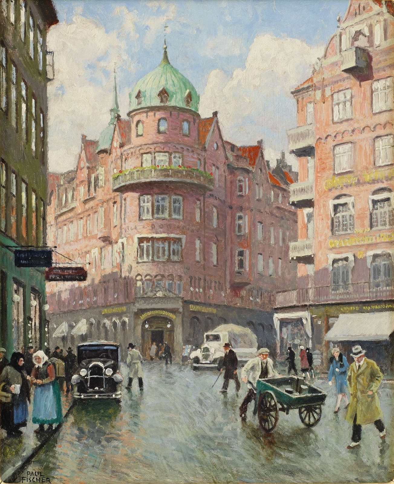 Вид Фриманслодж с фруктовой тележкой в Копенгагене.1923