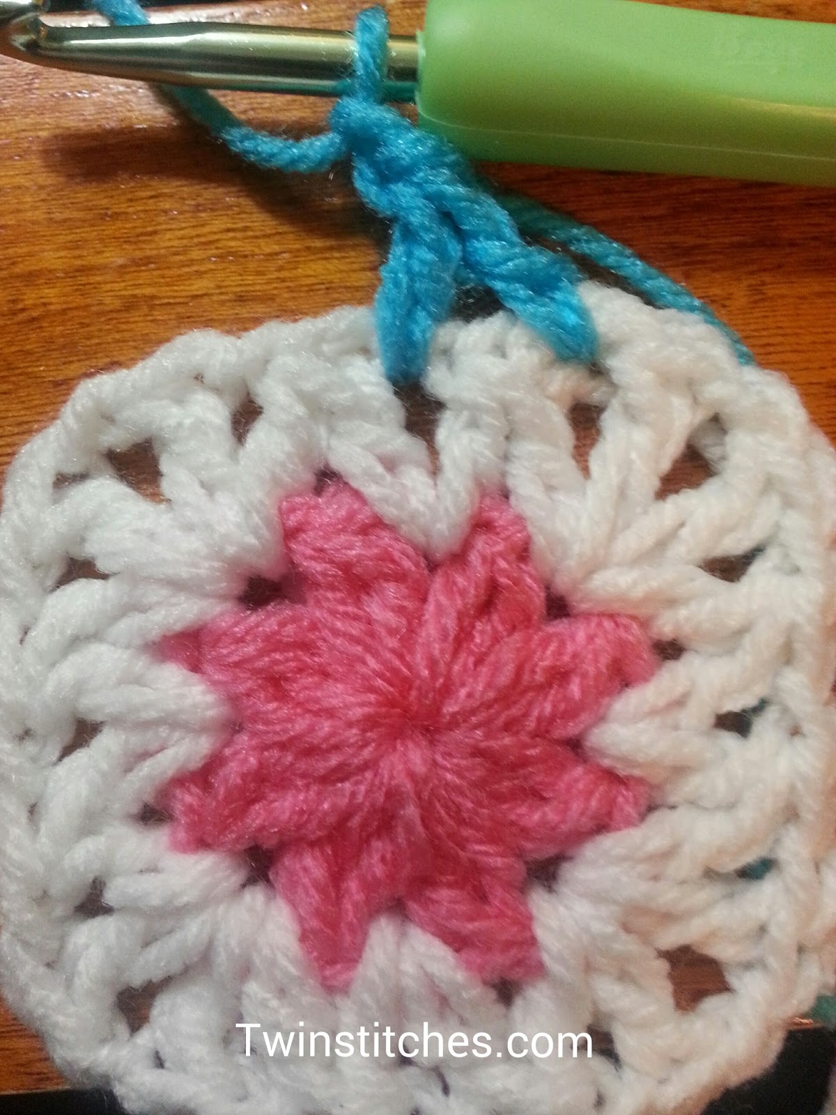 Note about the corners: Each corner is worked over three stitches. They will consist of the second half of a dc2tog, chain 1, dc, chain 1, dc, chain 1, the first half of a dc2tog. You will have what appears to be 4 dcs in each corner.