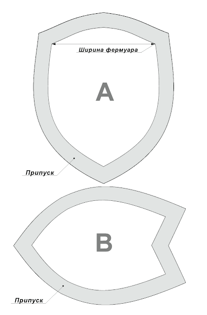Для пошива нам понадобится выкроить по две детали А и В из основной, подкладочной ткани и уплотнителя.