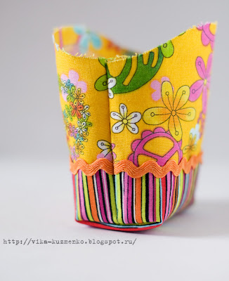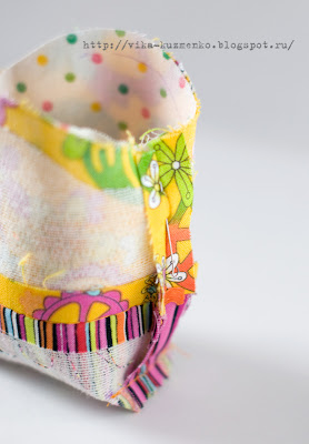Забыла здесь показать, что после сшивания верха я подрезаю верх ножницами зиг-заг и делаю небольшие надрезы (осторожно , что бы шов не повредить) что бы потом было легче выворачивать изогнутые части:) После выворачивания сшиваем потайным швом. Любуемся результатом:)