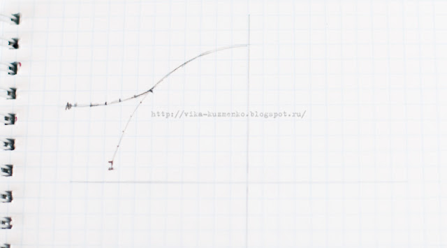 -Примерно от серединки (для создания объема) поднимаем линию, но что бы она по размеру получилась такая же на основной с помощью линейки отмеряем отрезочки по 5 мм и переносим их количество на новую часть. Главное что бы количество отрезочков совпало:)