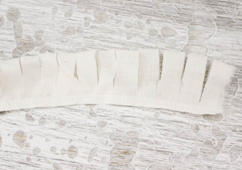 Логика изготовления проста: длинная полоска ткани складывается пополам вдоль, края прошиваются на машинке, на противоположной стороне делаем прорези.