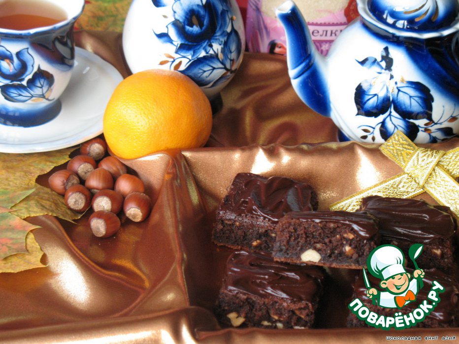 Сочетание коржей и шоколадного крема и залитый шоколадной глазурью