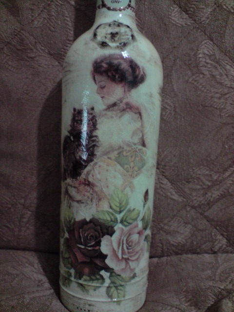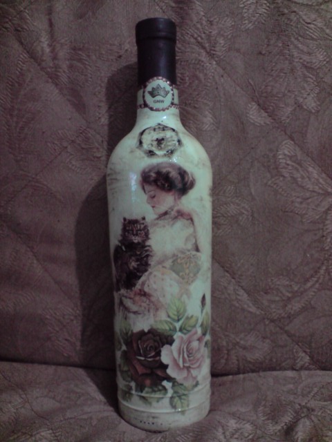 Очень красивая винтажная бутылочка задекупажилась у меня