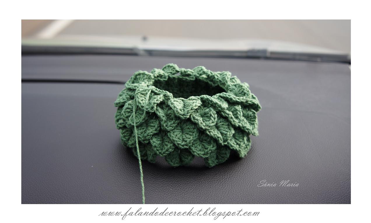 Вяжем сначала ободок столбиками с накидом, замыкаем его в круг, потом переходим к вязанию "чешуек".