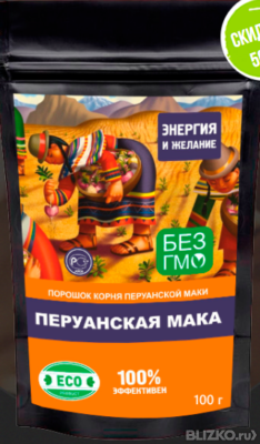 Порошок корня мaки перуанской доступен от самых разных производителей БАДов. Порошок корня маки предлагается смешивать с горячей или холодной водой, либо с соком или использовать для приготовления фруктовых коктейлей, добавлять в пищу, такую как торты и другие хлебобулочные изделия. Рекомендуемая дневная доза 5-20 грамм.