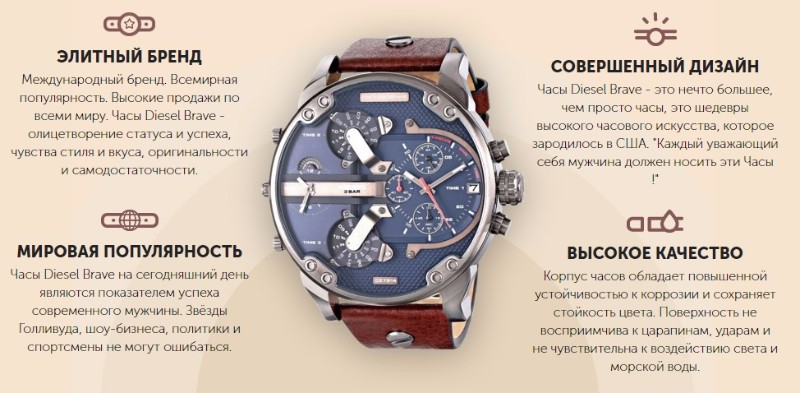Невероятно красивые и стильные часы Diesel представляют собой свежий взгляд в будущее, где подобные часы будут являться символом успеха.