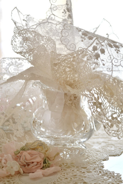 Думаю, я постепенно все таки вас смогу переубедить - мешковина отличный материал не только для простецкого декора, но и может приобретать вполне презентабельный облик в руках умелого мастера:) Не верите? Тогда посмотрите, как здорово смотрится цветок, выполненный из мешковины с добавлением кружев талантливой мастерицой Донной Картни (Donna Courtney), автором ресурса The Decorated House!