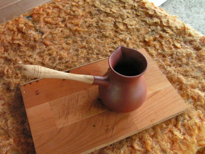 Сваренный в глиняной турке, кофе приобретает неповторимый букет и изысканный вкус. Причина этому - пористая структура глины. Кофе при варке насыщается воздухом, а глиняная турка впитывает в себя его аромат. В такой джезве лучше варить кофе одного сорта, чтобы при следующем приготовлении кофе не смешивался аромат, либо иметь в арсенале несколько штук.