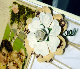 За создание этой открытки стоит сказать огромное спасибо мастерицам, которые присылали мне подарки вместе с АТС или в рамках ПИФа, т.к. большинство материалов именно подарочные: тисненый фон, "окошки" с тисненым цветочным рисунком, картинка, и два плоских цветочка.