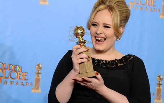 Адель удостоилась статуэтки за лучший саундтрек к фильму «007: координаты «Скайфолл». Голосистая певица, которая вышла в свет впервые после родов, радостно воскликнула несколько раз «О боже! О боже!» и со сцены произнесла слова благодарности в адрес сына и мамы, а также Ассоциации иностранной прессы, аккредитованной при Голливуде, после чего приняла ценную награду.