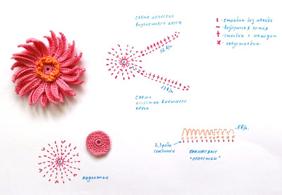 <a href="https://www.liveinternet.ru/users/intro77/post259966283/">Гербера-вязаные цветы</a><br/>Гербера-вязаные цветы Г - Гербера Из великого разнообразия расцветок меня привлекли эти розовые красавицы :-) Г - Гербера А вот и вязаное воплощение. Много длинных нежных розовых лепестков обрамляют серединку абрикосового цвета. В центре - темно-бордовые "тычинки" из бисера. Для вязания использовался тонкий "Ирис" ("Гамма") и крючок №1. Цветочек вяжется в три этапа по схеме. ... <a href="https://www.liveinternet.ru/users/intro77/post259966283/">Читать далее...</a>