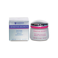 успокаивающая смягчающая маска "Скорая помощь" (проф. марка Janssen, линия "Sensetive Secrets"). Акт. компоненты: масло макадамии, цитруса, пантенол; экстракты: иглицы, центеллы, календулы, конского каштана; гидролизированные протеины дрожжей, сквалан, витамины А и Е. Маска с нежной кремовой консистенцией успокаивает, быстро снимает раздражение и покраснения, укрепляет сосуды.