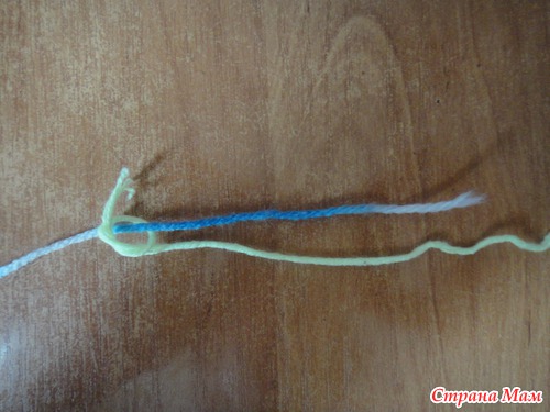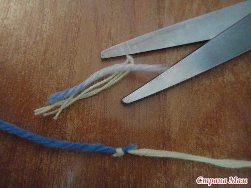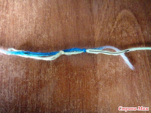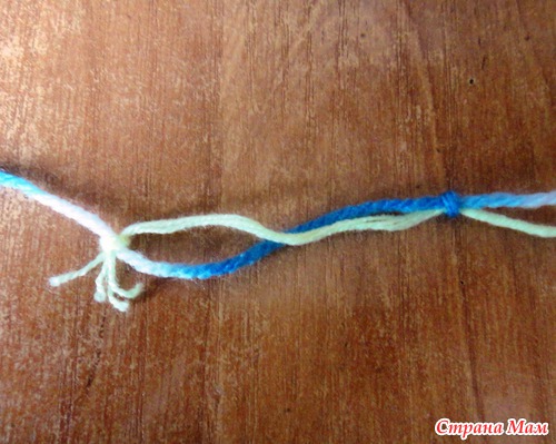 Конец шнура обязательно закрепляем узлом или перевязываем ниточкой (11), иначе он просто раскрутиться обратно. И если нужно будет укоротить витой шнурок из ниток, не забудьте, перед тем как браться за ножницы, шнур закрепить от распускания.