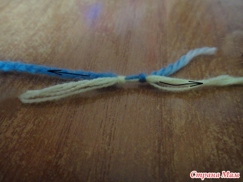 При закручивании обязательно держим нитки натянутыми. Закрутить лучше потуже, но так, чтобы пучок ниток оставался ровным (6).