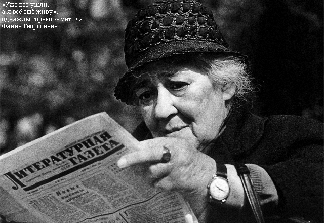 её метко-едкие высказывания, и мало кто видит за умными злыми шутками чудовищно одинокого, неприкаянного человека. Как искренне она ответила фотографу, который просил её «быть повеселее» — готовили статью о Раневской и одновременно с интервью делали съёмку: «Моя жизнь ужасно грустна, а вы хотите, чтобы я воткнула себе в задницу куст сирени и сделала перед вами стриптиз».