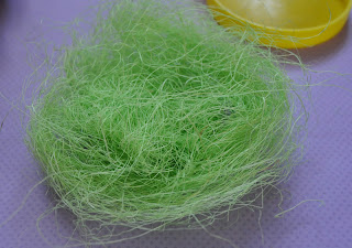 так же приклеиваем желтый сизаль в серединки скорлупы.