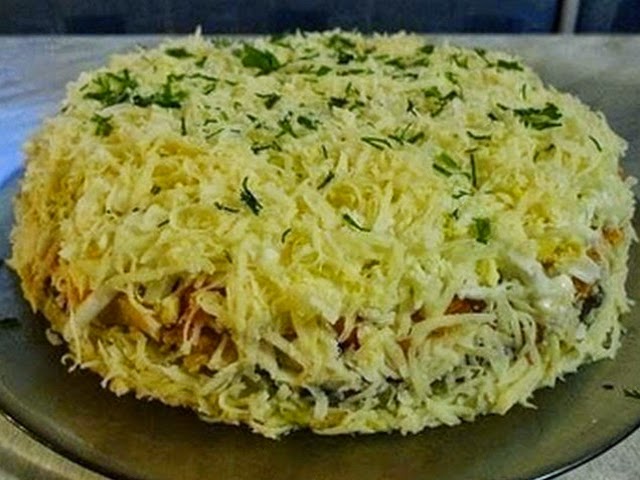 Часть 8 - Слоеный салат с курицей «Красная шапочка»
