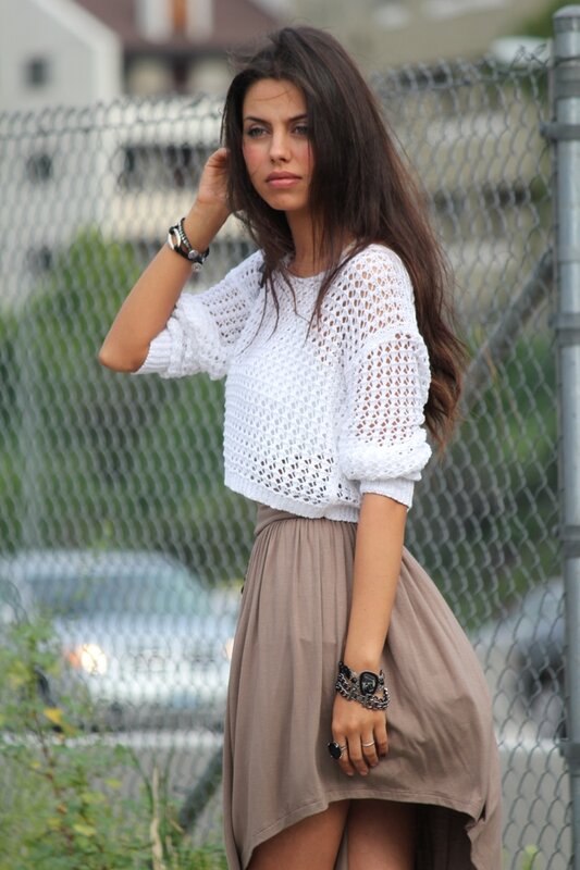Ажурный пуловер связан крючком №5 из хлопковой пряжи. Схема вязания пуловера крючком ...
